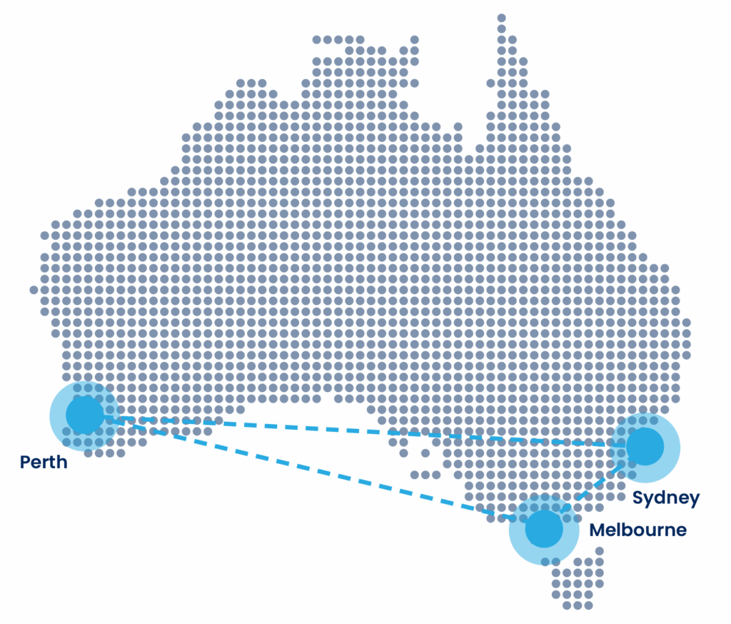 Data is spread across three Australian data centres in Sydney, Melbourne and Perth to ensure data resiliency.